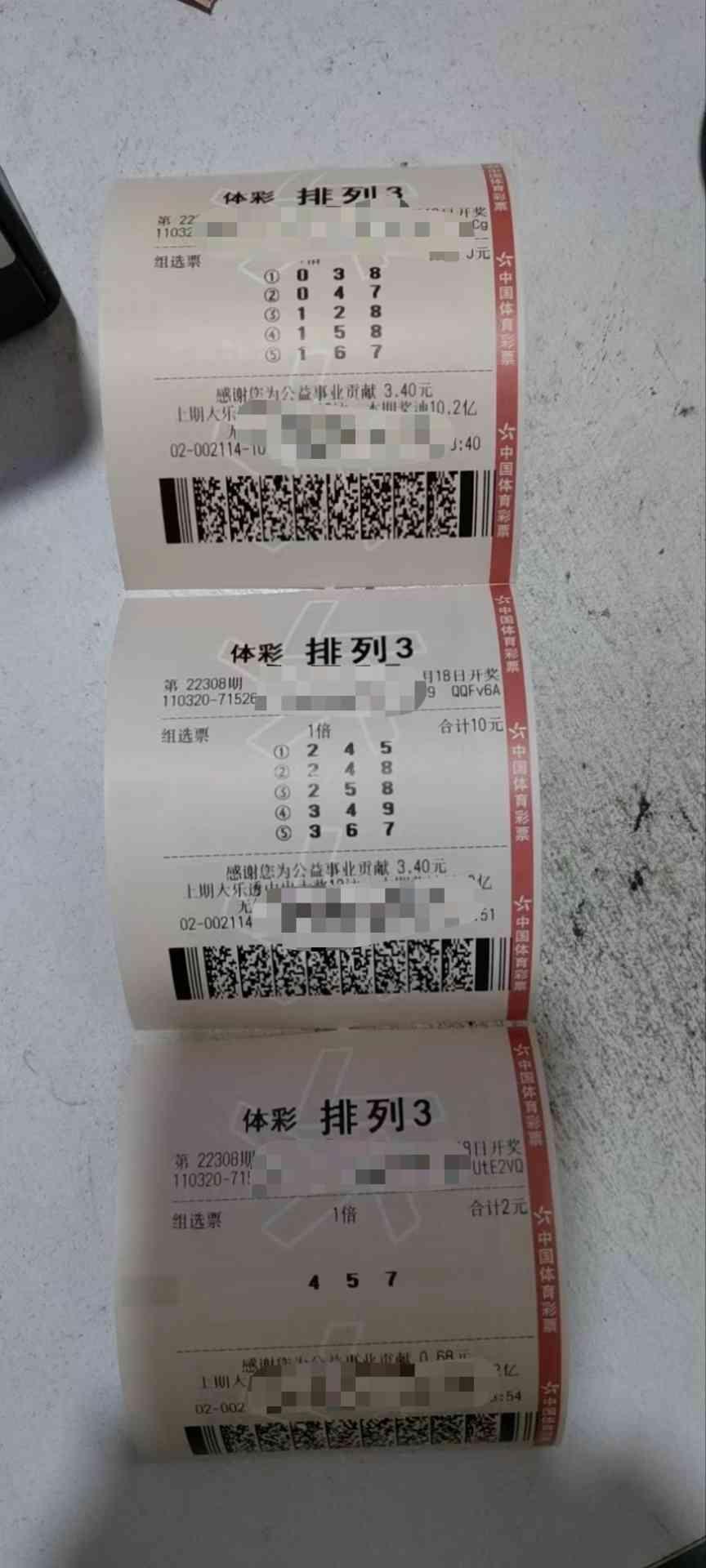 排列三 308期晒票 直接上票