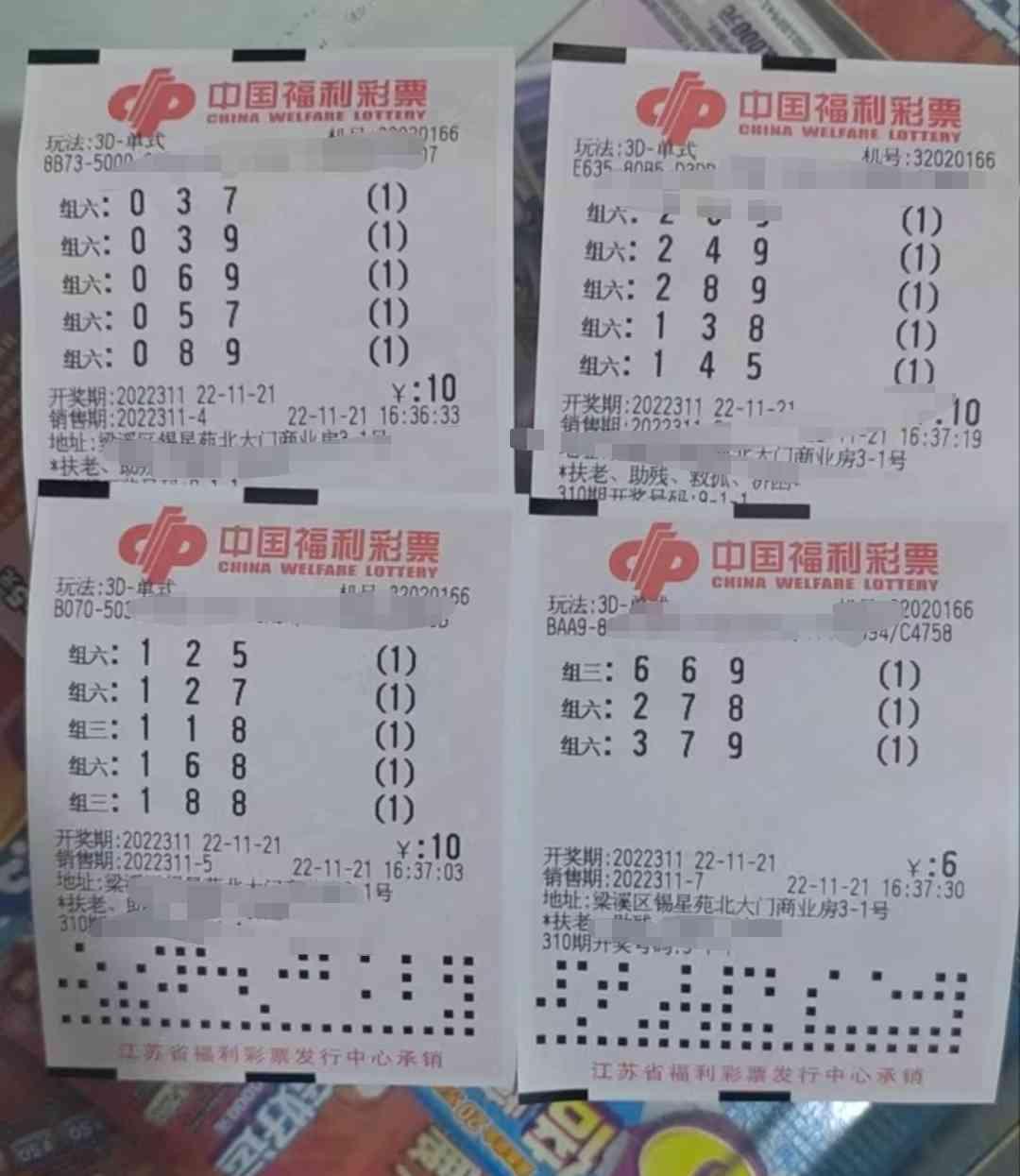 福彩3D 311期晒票 3D组选