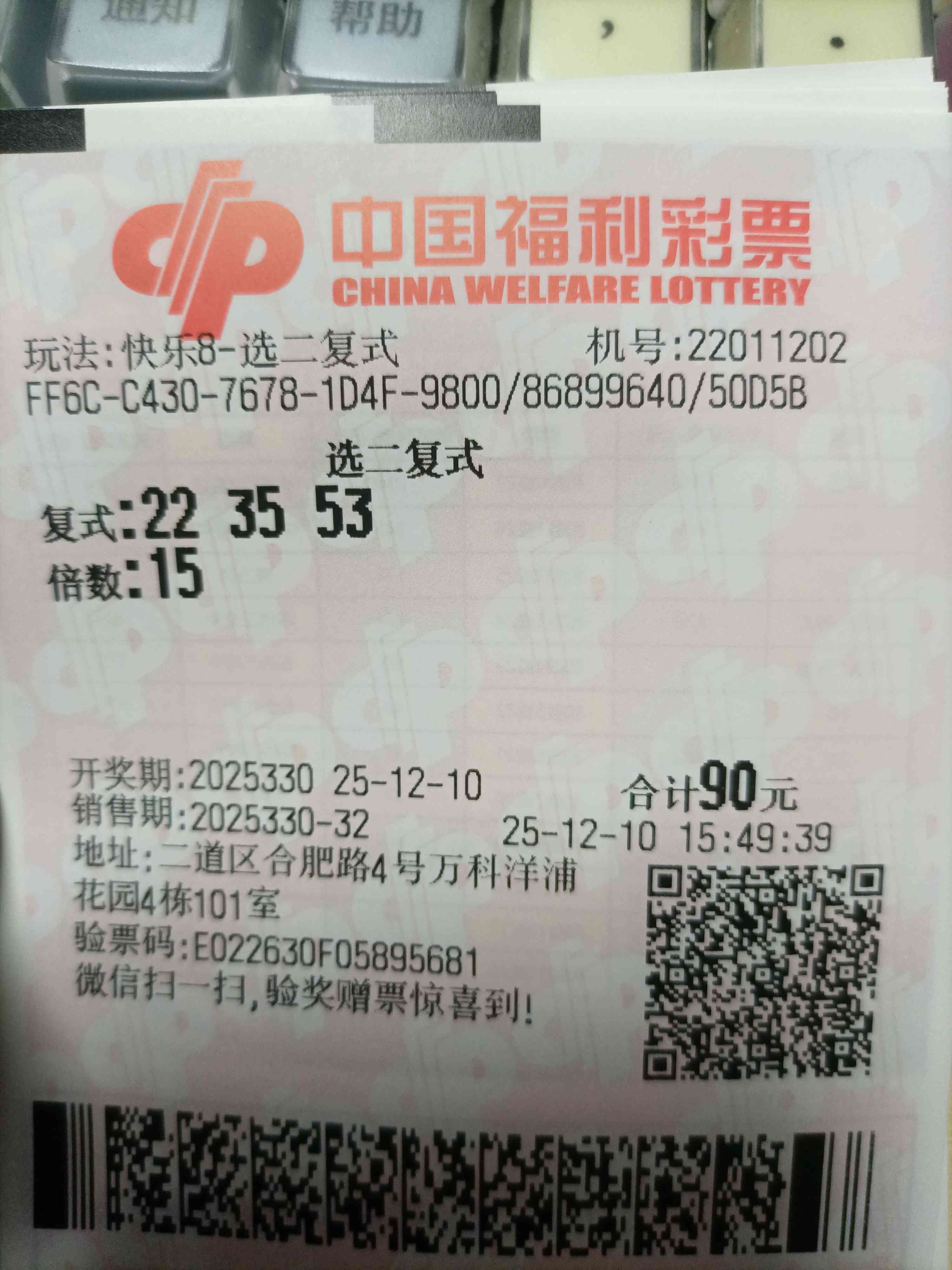 快乐8 330期晒票 快乐8