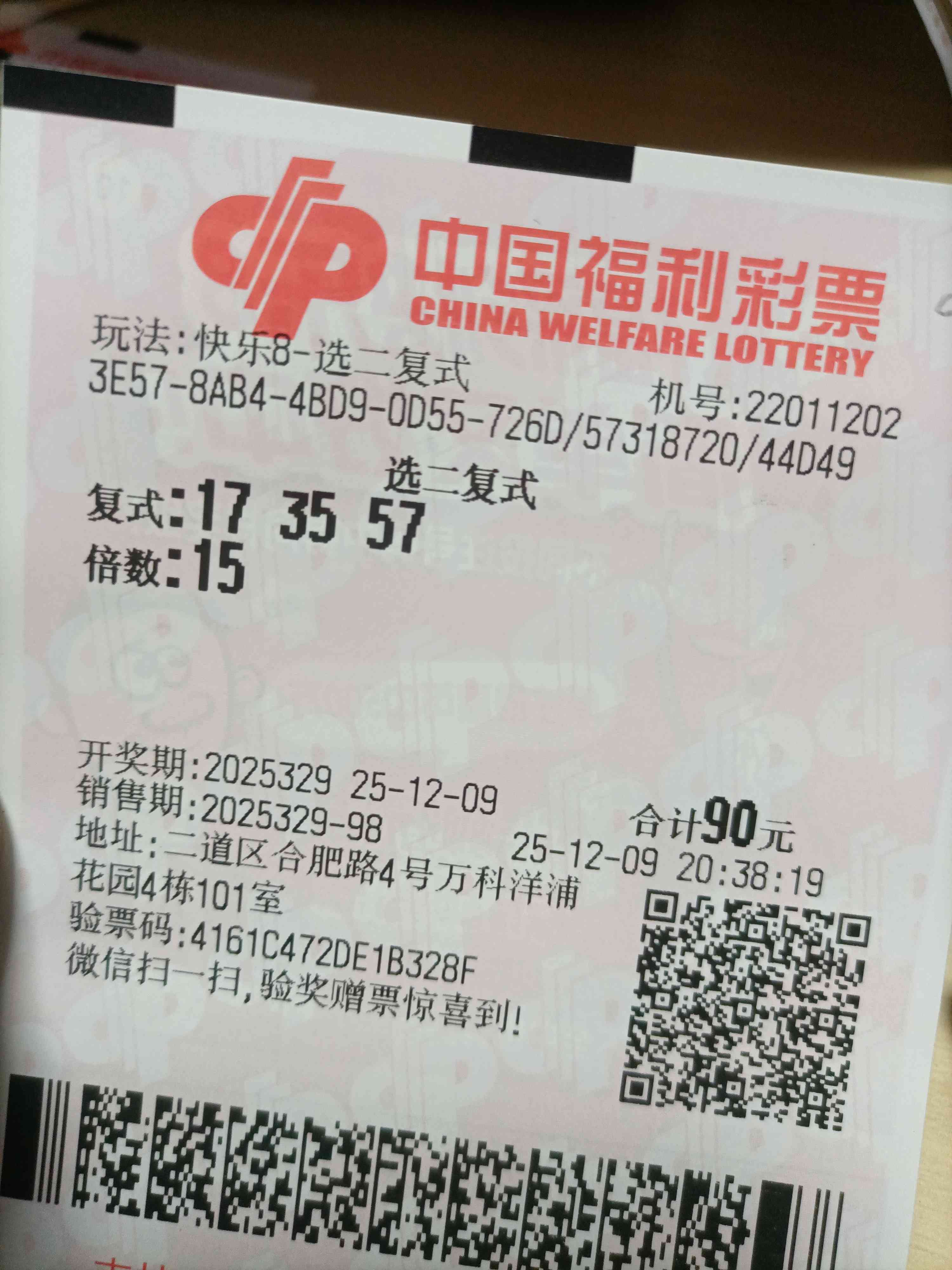 快乐8 329期晒票 快乐8