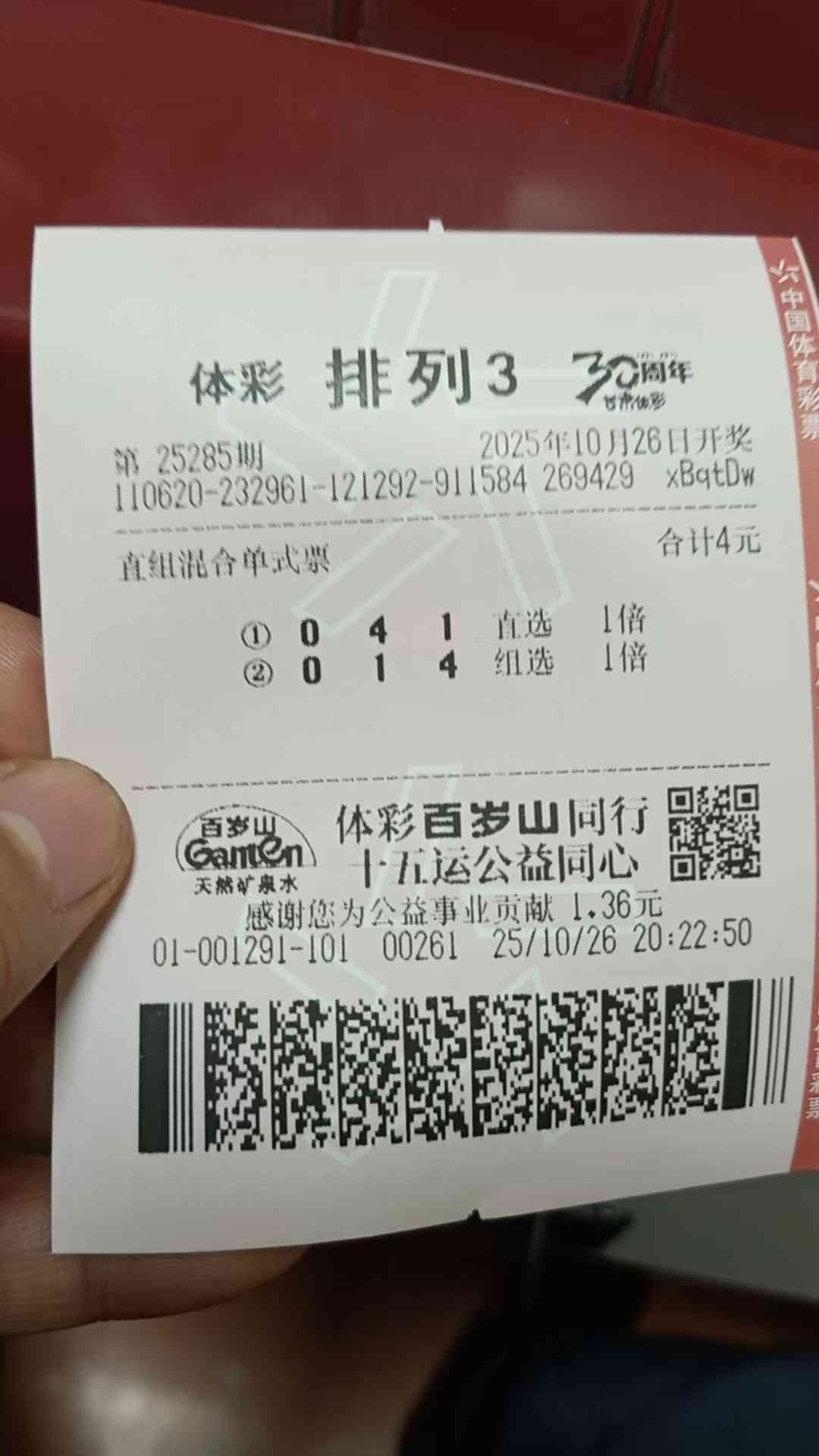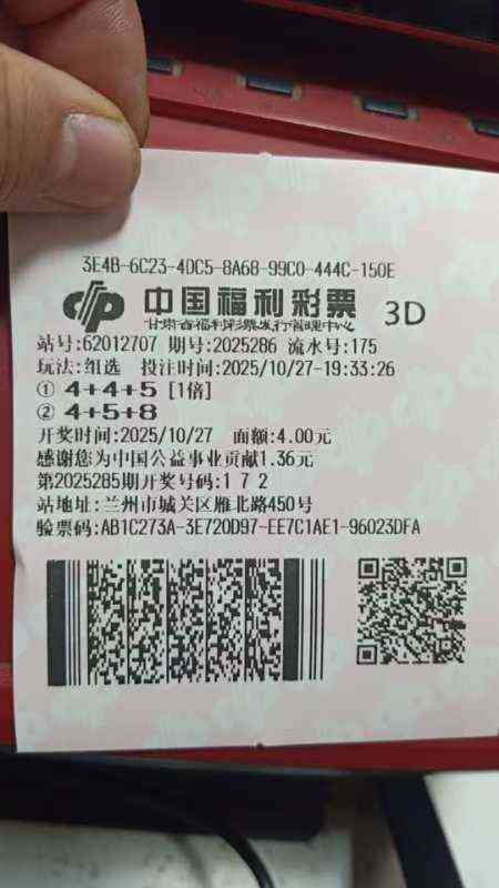 福彩3D 286期晒票